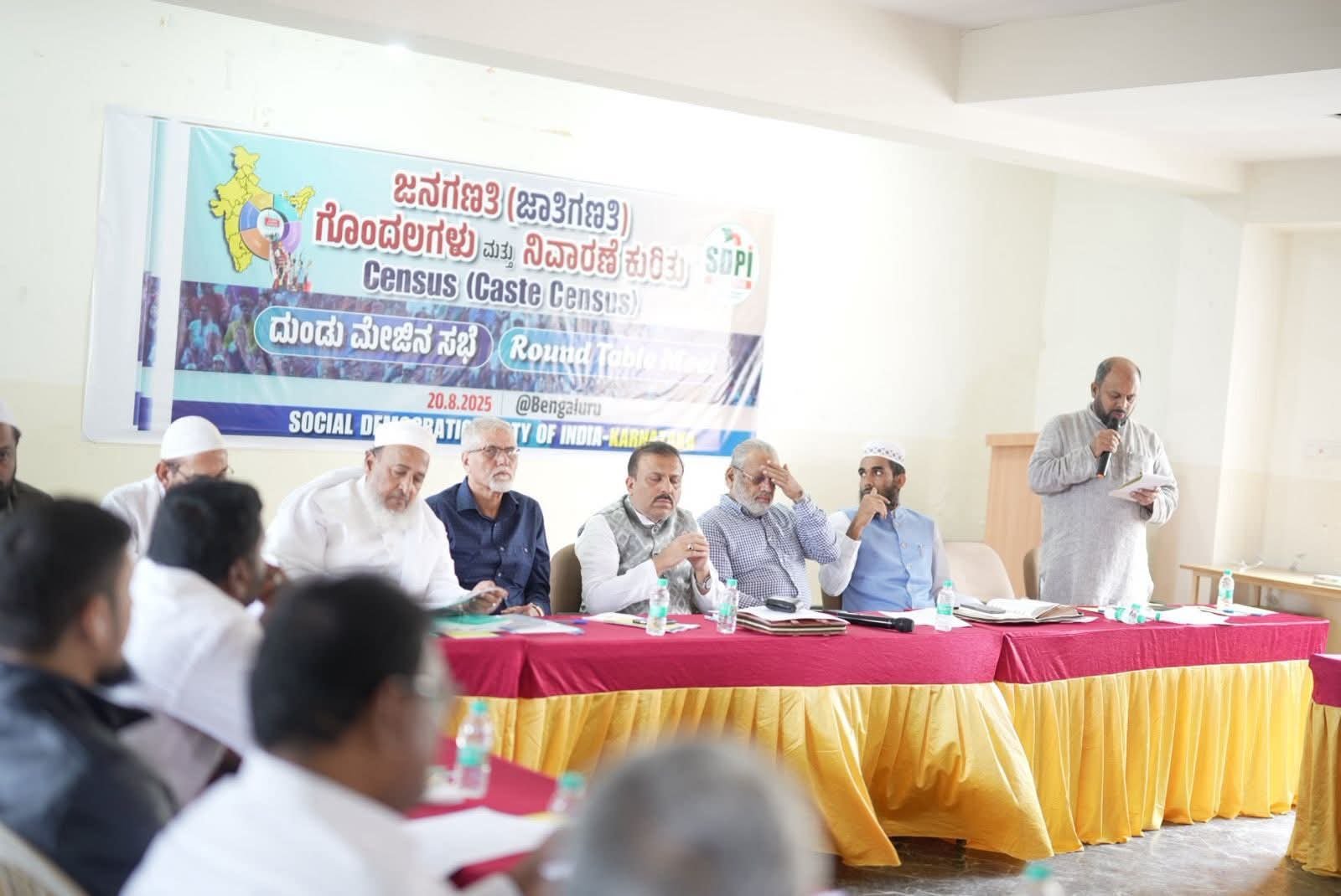 SDPI ಹಮ್ಮಿಕೊಂಡ ಎರಡನೇ ಹಂತದ ಜನಗಣತಿ (ಜಾತಿ ಗಣತಿ) ಗೊಂದಲಗಳು ಮತ್ತು ನಿವಾರಣೆ ಕುರಿತ ದುಂಡು ಮೇಜಿನ ಸಭೆ ಬೆಂಗಳೂರಿನ ಹಝ್ರತ್ ಹಮೀದ್ ಷಾ ಕಾಂಪ್ಲೇಕ್ಸ್ ನ ಉರ್ದು ಹಾಲ್ ನಲ್ಲಿ ನಡೆಯುತ್ತಿದ್ದೂ ಪಕ್ಷದ ರಾಜ್ಯಾಧ್ಯಕ್ಷ ಅಬ್ದುಲ್ ಮಜೀದ್ ಅವರ ಪ್ರಾಸ್ತವಿಕ ಮಾತಿನೊಂದೊಂದಿಗೆ ಸಭೆಗೆ ಚಾಲನೆ ನೀಡಿದರು. ವಿವಿಧ ಸಂಘಟನೆಗಳ, ಪಕ್ಷಗಳ ನಾಯಕರು, ನಿವೃತ್ತ KAS ಅಧಿಕಾರಿಗಳು, ವಿವಿಧ ಸರ್ಕಾರಿ ಕ್ಷೇತ್ರಗಳಲ್ಲಿ ಸೇವೆ ಸಲ್ಲಿಸಿ ನಿವೃತ್ತಿ ಹೊಂದಿರುವ ಅಧಿಕಾರಿಗಳು, ಹೈಕೋರ್ಟ್ ವಕೀಲರು, ಚಿಂತಕರು, ಜರ್ನಲಿಸ್ಟ್ ಗಳು, ಶಿಕ್ಷಕರು, ಧಾರ್ಮಿಕ ಮತ್ತು ಸಾಮಾಜಿಕ ಕ್ಷೇತ್ರದಲ್ಲಿ ಗುರುತಿಸಿ ಕೊಂಡಿರುವ ಪ್ರಮುಖರು ಭಾಗವಹಿಸಿ ಚರ್ಚೆಯಲ್ಲಿ ಪಾಲ್ಗೊಳ್ಳುತ್ತಿದ್ದಾರೆ.