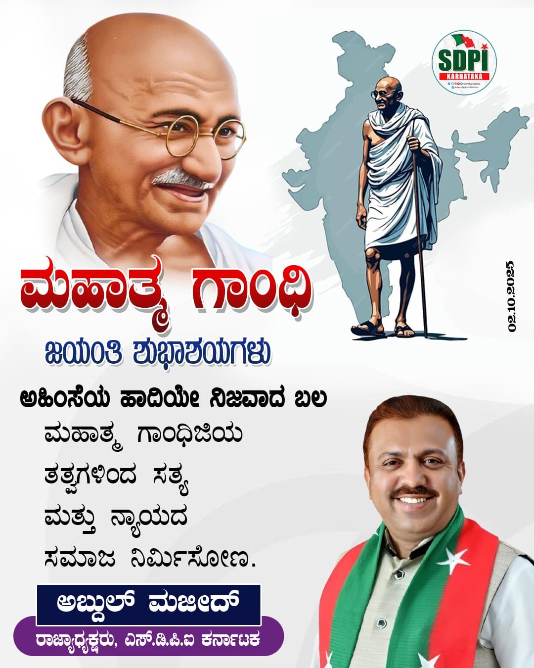 ಅಹಿಂಸೆಯ ಹಾದಿಯೇ ನಿಜವಾದ ಬಲ ಮಹಾತ್ಮ ಗಾಂಧಿಜಿಯ ತತ್ವಗಳಿಂದ ಸತ್ಯ ಮತ್ತು ನ್ಯಾಯದ ಸಮಾಜ ನಿರ್ಮಿಸೋಣ.