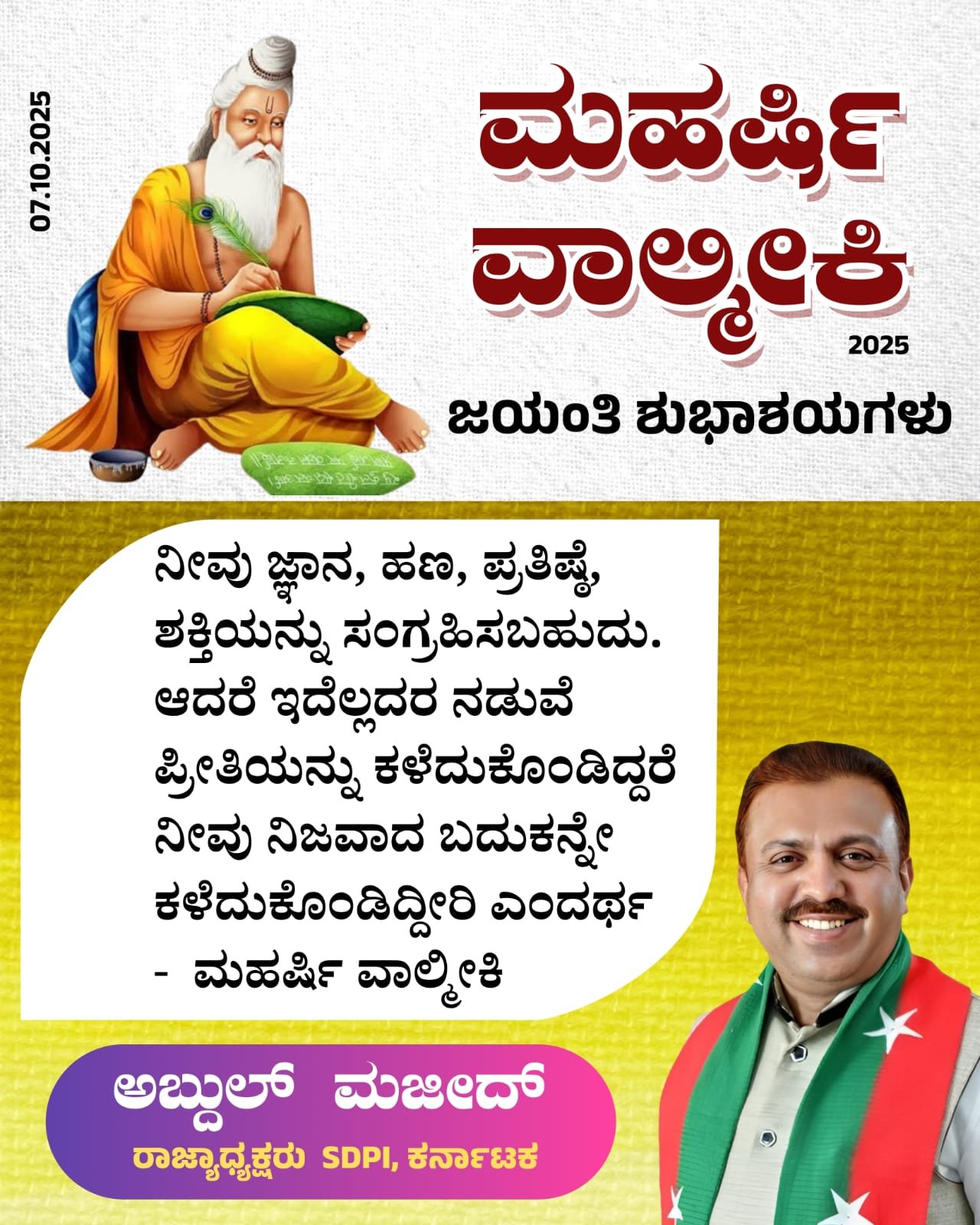 ನೀವು ಜ್ಞಾನ, ಹಣ, ಪ್ರತಿಷ್ಠೆ, ಶಕ್ತಿಯನ್ನು ಸಂಗ್ರಹಿಸಬಹುದು. ಆದರೆ ಇದೆಲ್ಲದರ ನಡುವೆ ಪ್ರೀತಿಯನ್ನು ಕಳೆದುಕೊಂಡಿದ್ದರೆ ನೀವು ನಿಜವಾದ ಬದುಕನ್ನೇ ಕಳೆದುಕೊಂಡಿದ್ದೀರಿ ಎಂದರ್ಥ ಮಹರ್ಷಿ ವಾಲ್ಮೀಕಿ