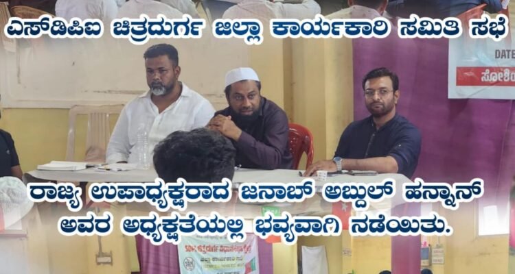 ಎಸ್‌ಡಿಪಿಐ ಚಿತ್ರದುರ್ಗ ಜಿಲ್ಲಾ ಕಾರ್ಯಕಾರಿ ಸಮಿತಿ ಸಭೆರಾಜ್ಯ ಉಪಾಧ್ಯಕ್ಷರಾದ ಜನಾಬ್ ಅಬ್ದುಲ್ ಹನ್ನಾನ್ ಅವರ ಅಧ್ಯಕ್ಷತೆಯಲ್ಲಿ ಭವ್ಯವಾಗಿ ನಡೆಯಿತು.