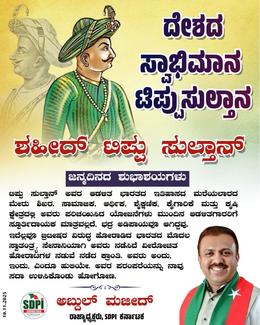 ಶಹೀದ್ ಟಿಪ್ಪು ಸುಲ್ತಾನ್ ಜನ್ಮದಿನದ ಶುಭಾಶಯಗಳು