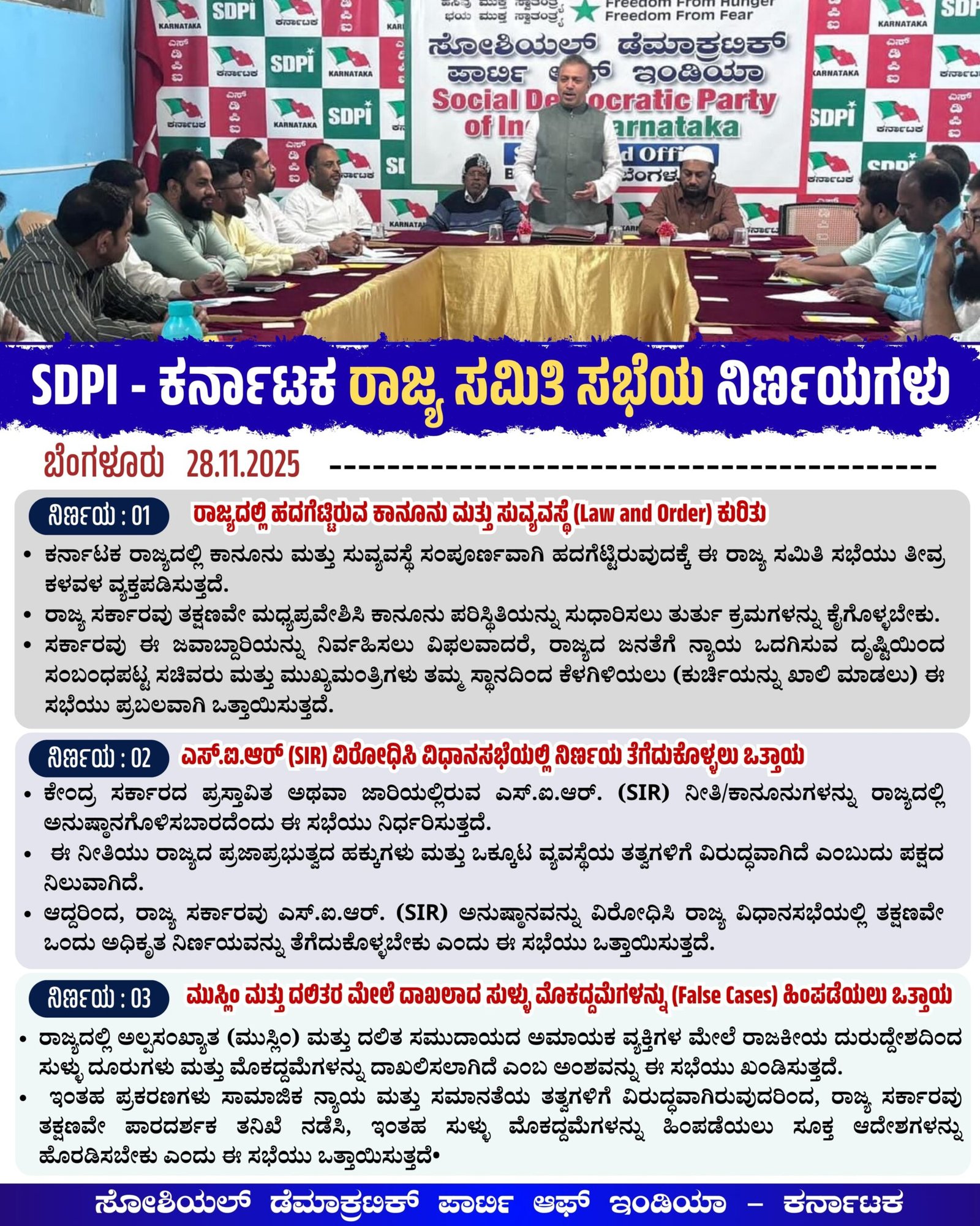سوشیل ڈیموکریٹک پارٹی آف انڈیا (SDPI) کی ریاستی کمیٹی کی میٹنگ 28/11/2025 کو پارٹی کے…