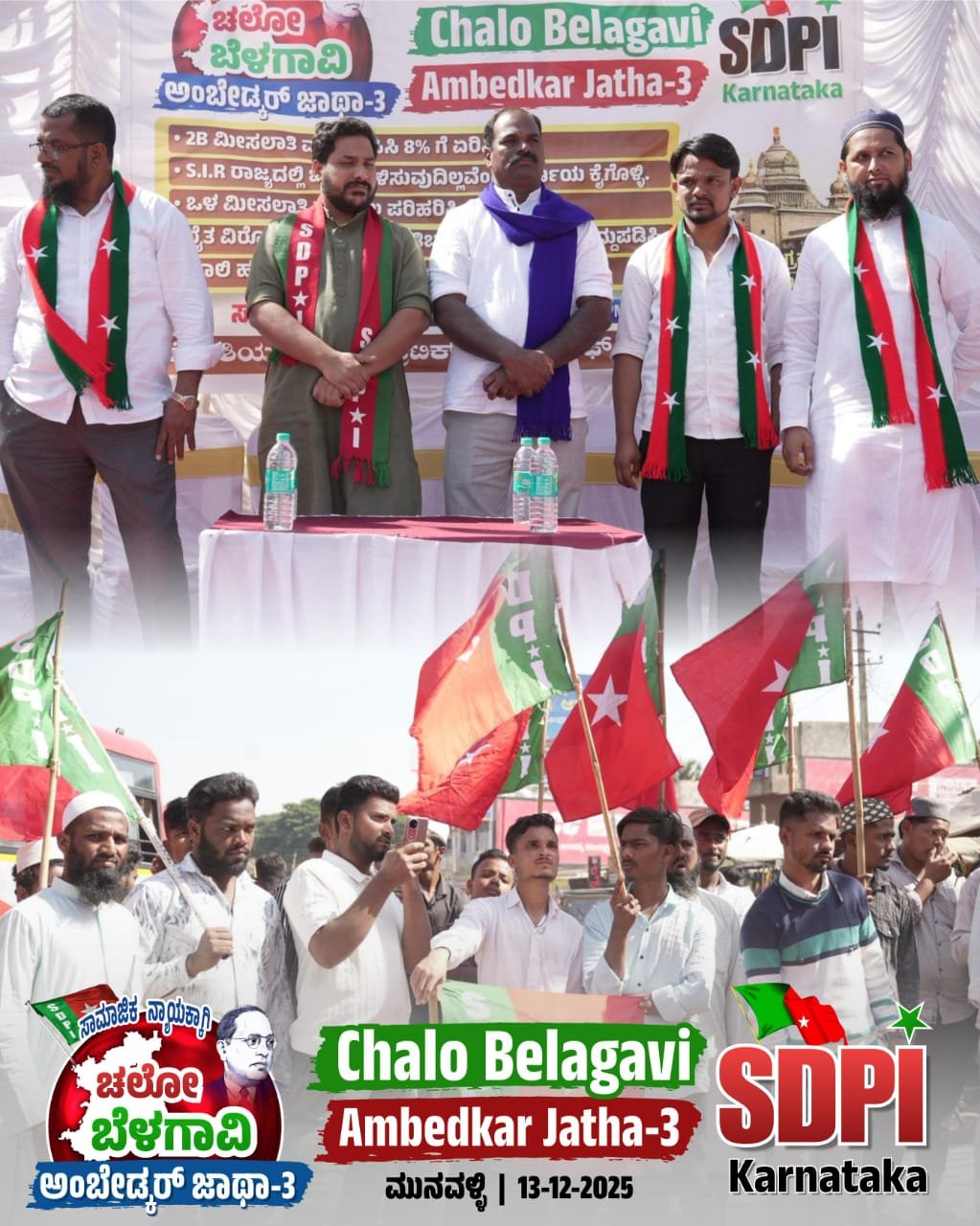 SDPI Karnataka SDPI ಹಲವು ಬೇಡಿಕೆಗಳೊಂದಿಗೆ ಕಿತ್ತೂರ ಚೆನ್ನಮ್ಮಳ ಮಣ್ಣಿನಿಂದ ಚಲೋ ಬೆಳಗಾವಿ ಅಂಬೇಡ್ಕರ್ ಜಾಥಾವನ್ನು ಆರಂಭಿಸಿ ಸುವರ್ಣ ಸೌಧಕ್ಕೆ…