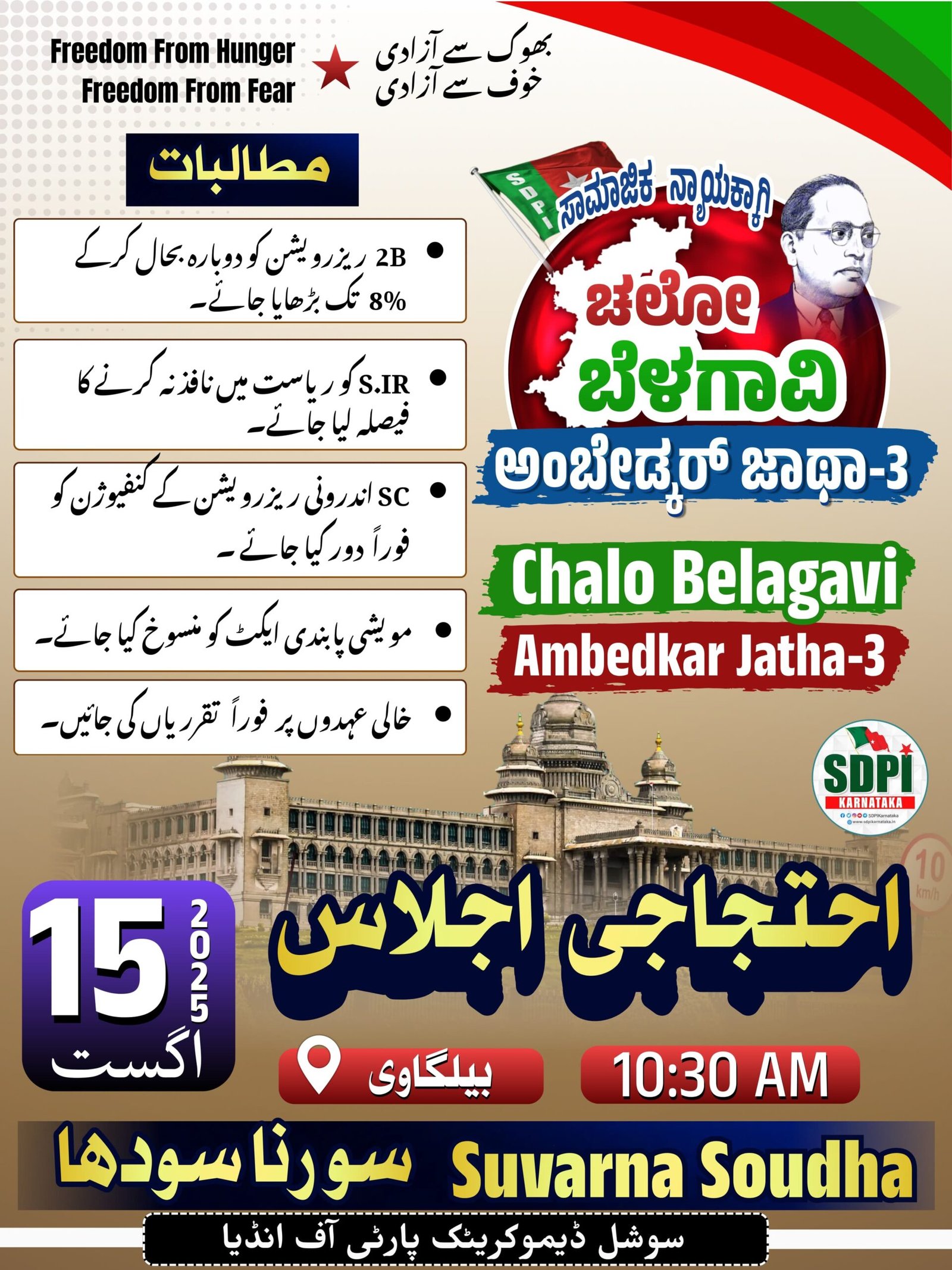 Ambedkar Jatha-3 Ehtijaji Ajlas BELAGAVI 10:30 AM Suvarna Soudha DEMANDS 2B Reservation ko dobara bahal…