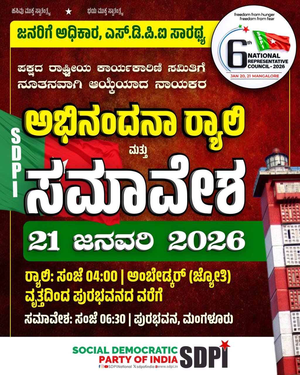 SIR ಮೂಲಕ ಮತದಾನದ ಹಕ್ಕನ್ನು ಕಸಿದುಕೊಳ್ಳುವ ಪ್ರಯತ್ನ ನಡೆಯುತ್ತಿದೆ - ಅಬ್ರಾರ್ 12.01.2026 ಬೆಳಗಾವಿ ಜಿಲ್ಲೆಯ ರಾಮದುರ್ಗ ತಾಲೂಕಿನಲ್ಲಿ ಸೋಶಿಯಲ್…