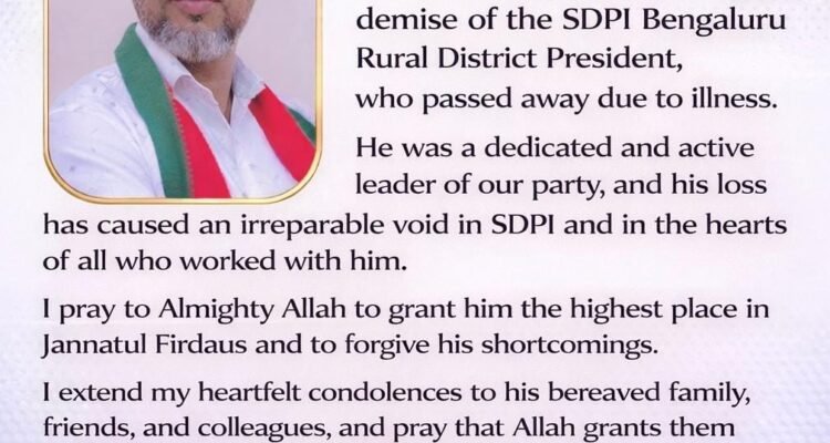 We are deeply saddened by the demise of the SDPI Bengaluru Rural District President, who passed away due to illness.