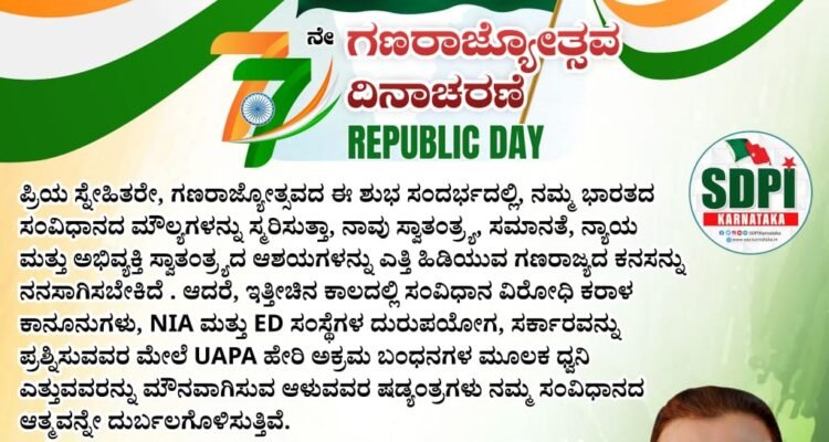 ಈ ಎಲ್ಲಾ ಸವಾಲುಗಳ ನಡುವೆಯೂ, ನಮ್ಮ ಸಂವಿಧಾನದ ಮೌಲ್ಯಗಳು ಸಂರಕ್ಷಣೆಗೊಳ್ಳಲು ಒಗ್ಗಟ್ಟಿನ ಹೋರಾಟದ ಅಗತ್ಯವಿದೆ, ಪ್ರಜಾಪ್ರಭುತ್ವದ ಆಧಾರಸ್ತಂಭಗಳು ದೃಢವಾಗಲಿ, ಮತ್ತು ನಮ್ಮ ದೇಶದ ಪ್ರತಿಯೊಬ್ಬ ನಾಗರಿಕನ ಹಕ್ಕುಗಳು ರಕ್ಷಣೆಯಾಗಲಿ ಎಂಬ ಆಶಯದೊಂದಿಗೆ, ನಿಮಗೆಲ್ಲರಿಗೂ ಹೃದಯಪೂರ್ವಕ ಗಣರಾಜ್ಯೋತ್ಸವದ ಶುಭಾಶಯಗಳು!