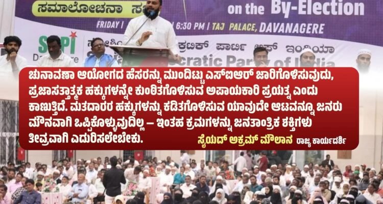 ಚುನಾವಣಾ ಆಯೋಗದ ಹೆಸರನ್ನು ಮುಂದಿಟ್ಟು ಎಸ್ಐಆರ್ ಜಾರಿಗೊಳಿಸುವುದು, ಪ್ರಜಾಸತ್ತಾತ್ಮಕ ಹಕ್ಕುಗಳನ್ನೇ ಕುಂಠಿತಗೊಳಿಸುವ ಅಪಾಯಕಾರಿ ಪ್ರಯತ್ನ ಎಂದು ಕಾಣುತ್ತಿದೆ. ಮತದಾರರ ಹಕ್ಕುಗಳನ್ನು ಕಡಿತಗೊಳಿಸುವ ಯಾವುದೇ ಆಟವನ್ನೂ ಜನರು ಮೌನವಾಗಿ ಒಪ್ಪಿಕೊಳ್ಳುವುದಿಲ್ಲ – ಇಂತಹ ಕ್ರಮಗಳನ್ನು ಜನತಾಂತ್ರಿಕ ಶಕ್ತಿಗಳು ತೀವ್ರವಾಗಿ ಎದುರಿಸಲೇಬೇಕು.
