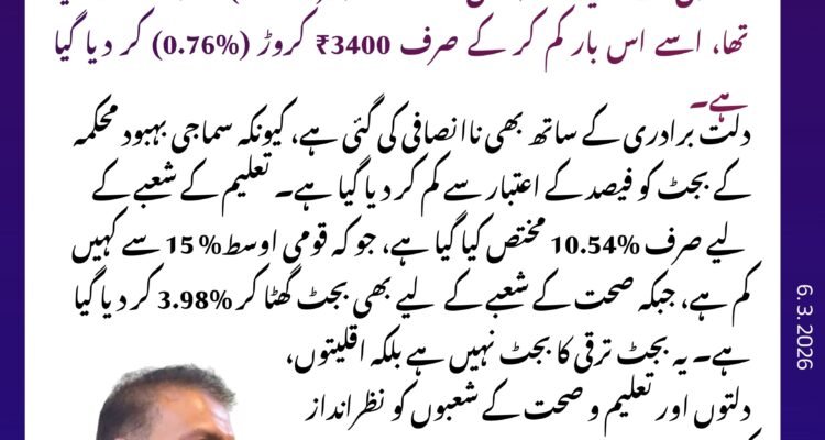 یہ بجٹ ترقی کا بجٹ نہیں ہے؛ بلکہ اقلیتوں، دلتوں اور تعلیم و صحت کے شعبوں کو نظر انداز کرنے والا بجٹ ہے۔