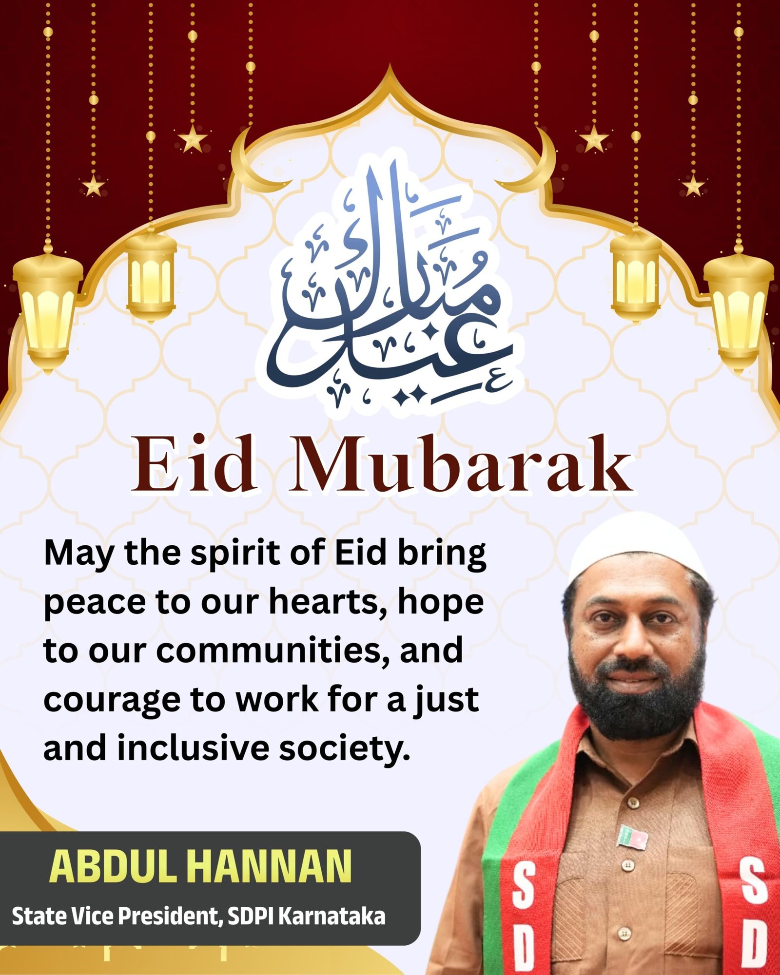 May the spirit of Eid bring peace to our hearts, hope to our communities, and courage to work for a just and inclusive society.