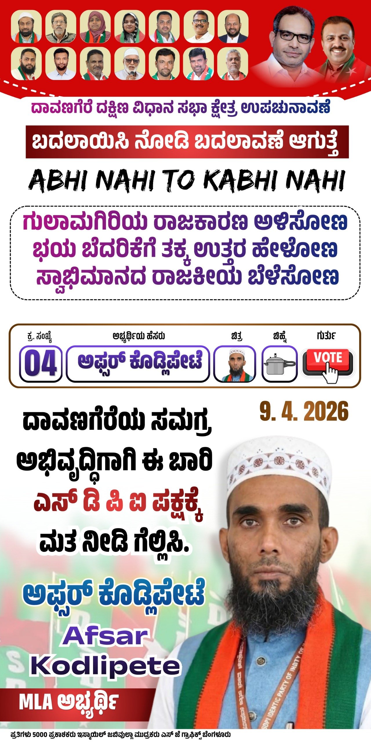 Abdul MajeedState President, SDPI Karnataka Davangere ABHI NAHI TOH KABHI NAHI VOTE FOR AFSAR KODLIPETE…