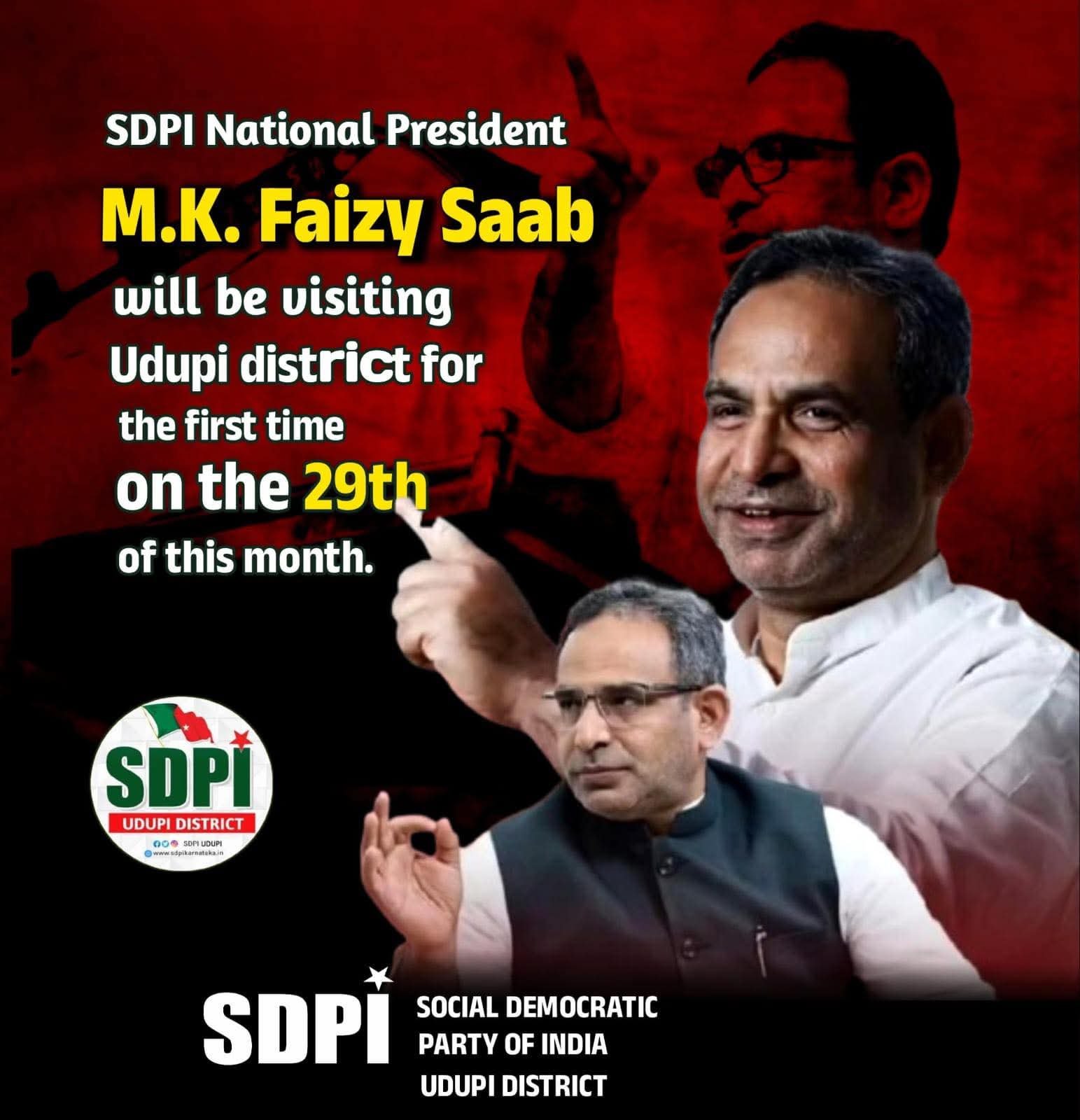 SDPI National President M.K. Faizy Saab will be visiting Udupi district for the first time on the 29th of this month.