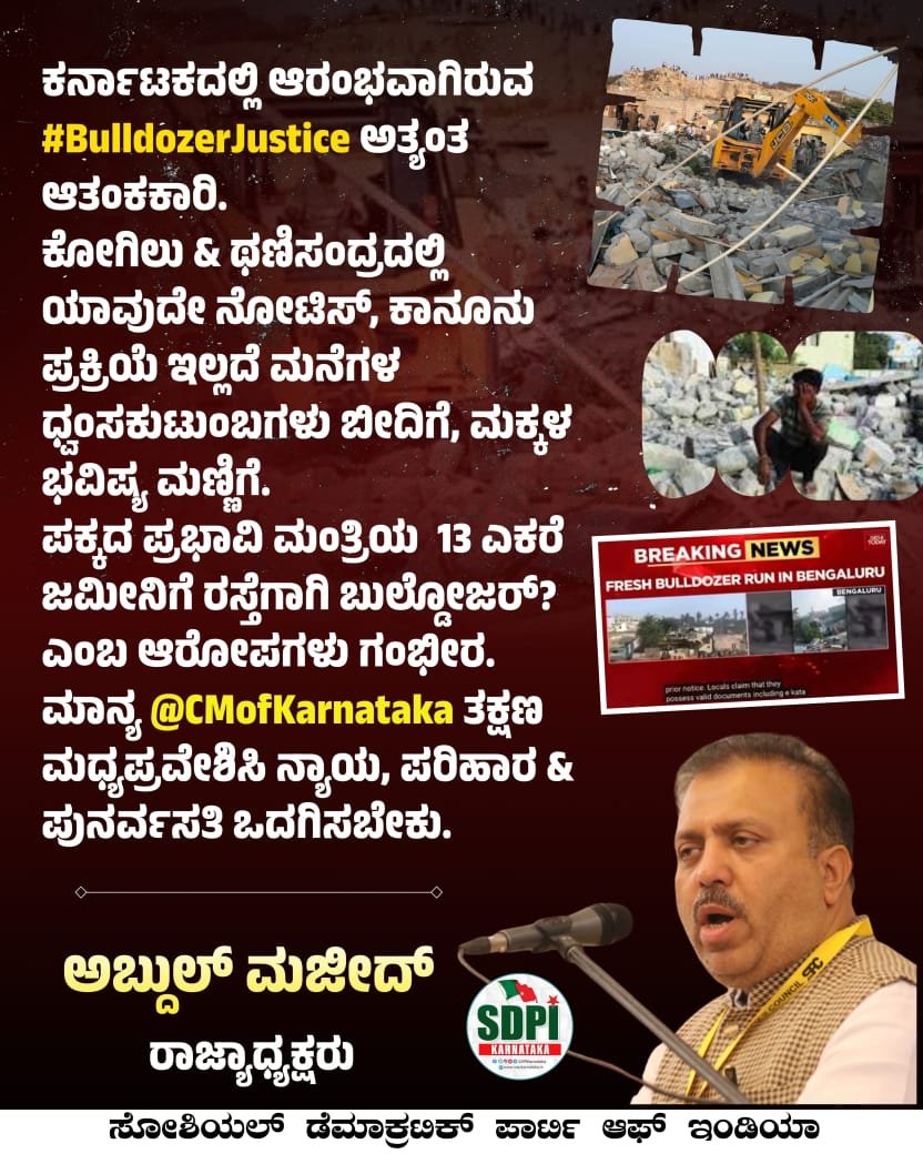 ~ಅಬ್ದುಲ್ ಮಜೀದ್,ರಾಜ್ಯಾಧ್ಯಕ್ಷರು SDPI, ಕರ್ನಾಟಕ